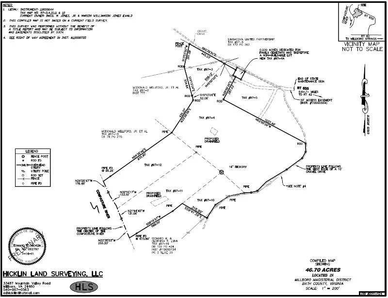Here is a stunning 46.7 acre building tract near Nimrod Hall fronting the Cowpasture River in Millboro, Virginia. The tract offers multiple elevated building sites with exceptional views, hardwood forest cover, open pasture and 696.2' of river frontage on the pristine Cowpasture River. The land has been thinned of brush and pines for easy access and open views.